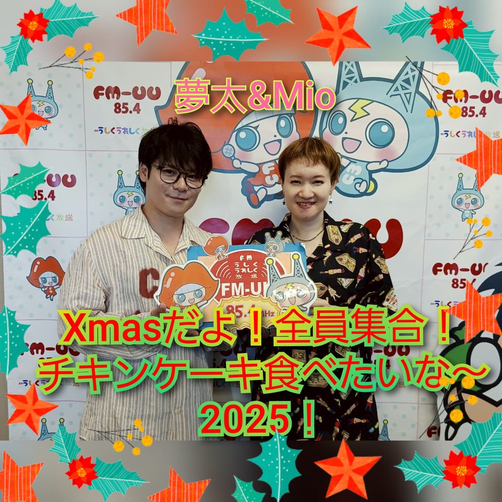 FMうしくうれしく放送(愛称:FM-UU)は、茨城県牛久市から周波数85.4MHzで放送中のコミュニティFM放送局です。 番組情報 番組予告 FM-UUを聴く お知らせ HOME > お知らせ,番組予告 > 12/25㈮夢ラジオ特別番組『X`masだよ!全員集合!チキンケーキ食べたいな~♪2025!』のお知らせ 12/25㈮夢ラジオ特別番組『X`masだよ!全員集合!チキンケーキ食べたいな~♪2025!』のお知らせ またまた特別番組のお知らせ🎅!! 夢ラジオでお馴染みの夢太×Mioのお二人がスペシャル番組をお届けいたします! 🔔【X`masだよ!全員集合!チキンケーキ食べたいな~♪2025!】🔔 日時2025年12月25日㈭ 午後8:00~9:00 お二人が皆様に賑やかに楽しいクリスマスをお届け🎁🍗 ぜひぜひお楽しみに~🎤🎀 « 【MUくんの番組予告】2025年12月25日(木)『UU ラジオ854』『GOGOラジオ854」 検索: FMうしくうれしく放送 放送局概要 アクセス 番組審議委員会 スポンサー企業 お問い合わせ